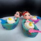 Bathtub Bath Bombs with bubble frosting bubbles and adorable toy mermaid doll.